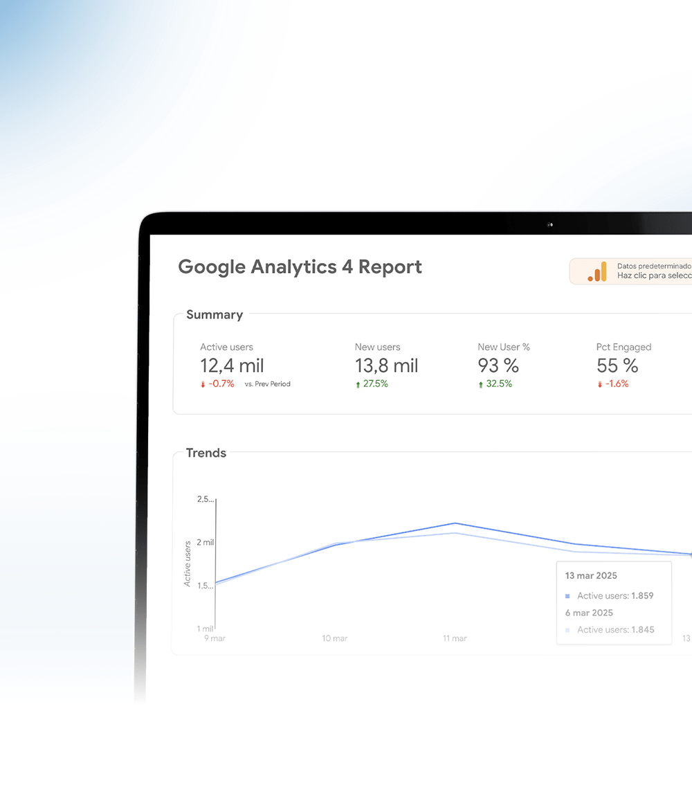Diseñamos campañas personalizadas basadas en tus objetivos y optimizamos continuamente.